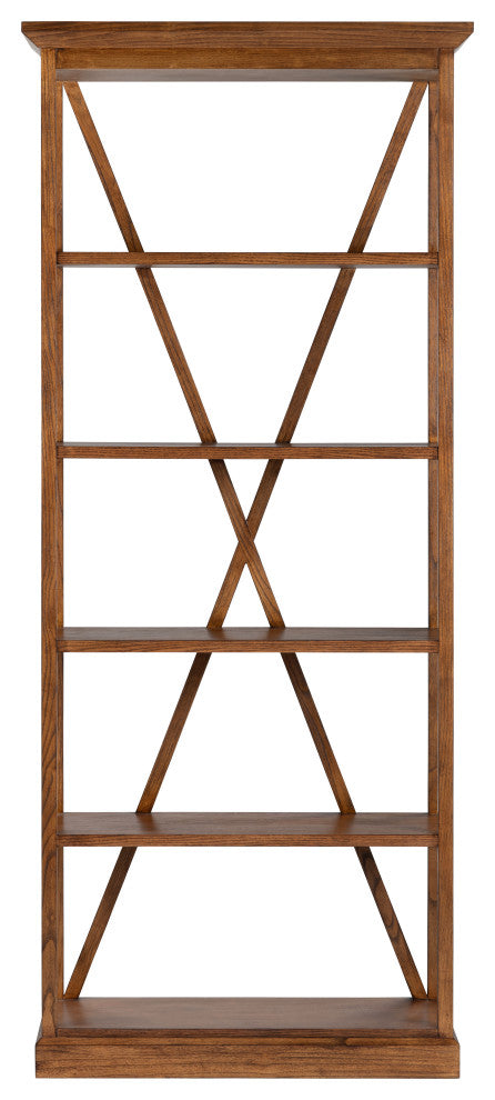 Showcase your favorite decor and books with this elegant display shelf, crafted from Mindi wood and white oak veneer for durability and timeless appeal. Finished with a warm brown, water-based coating, it adds a touch of sophistication to any space. Featuring four fixed open shelves, it provides ample room for display and storage while maintaining an airy design. Floor levelers ensure stability on uneven surfaces, making it a practical yet stylish addition to your living room, office, or bedroom