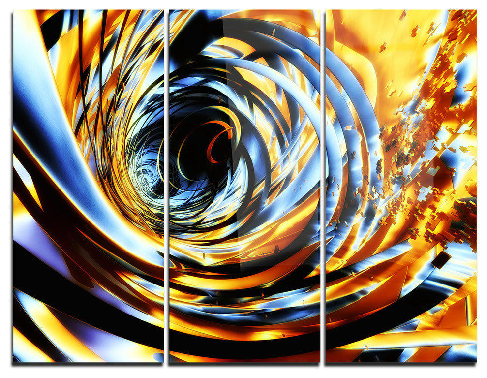 "Fractal 3-D Whirlwind Stripes" Metal Wall Art, 3 Panels, 36"x28"