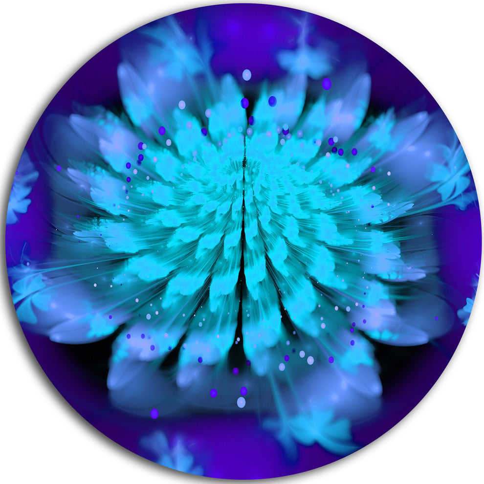 Fractal Blue Spread-Out Flower, Floral Art Round Metal Wall Art, 11"