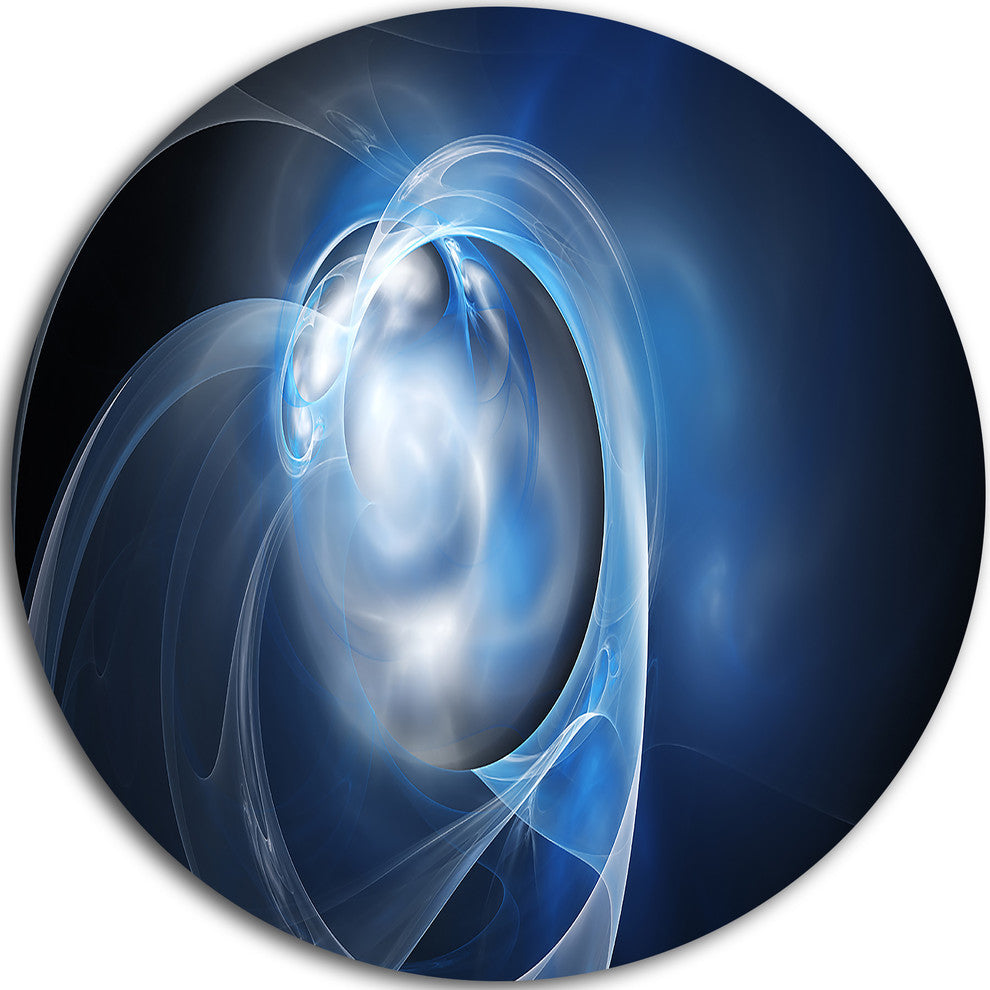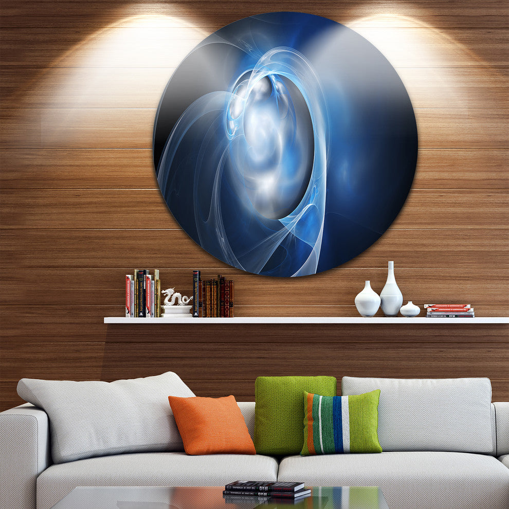 Fractal Lighting In Dark Blue, Abstract Digital Round Wall Art, 38"