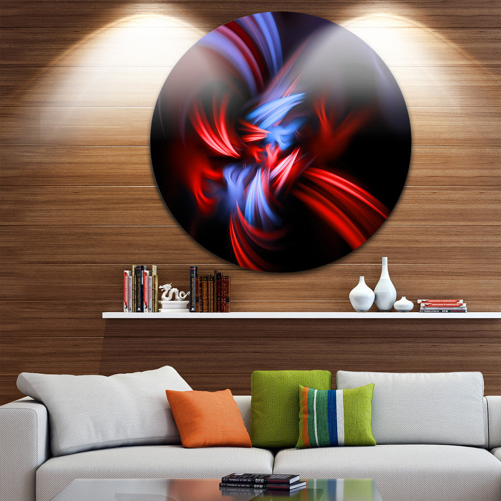 Bring Contemporary Abstraction to your home with this large Circle Metal wall art. This Fractal Red Connected Stripes Metal Artwork makes it the focal point of any room or office.
