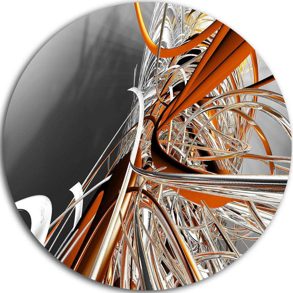 Bring Contemporary Abstraction to your home with this large Circle Metal wall art. This Fractal Red N White Connected Stripes Metal Artwork makes it the focal point of any room or office.