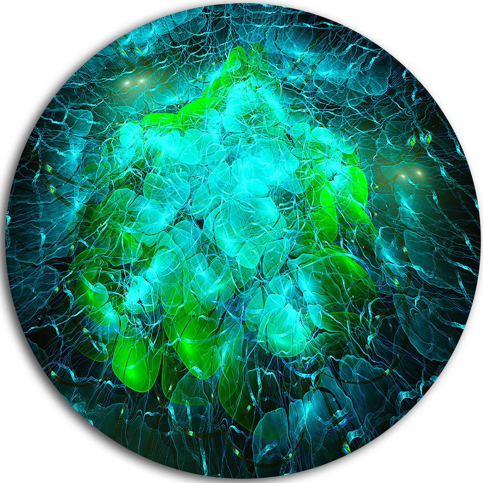 Bring Contemporary Abstraction to your home with this large Circle Metal wall art. This Fractal Smoke Texture Green Metal Artwork makes it the focal point of any room or office.