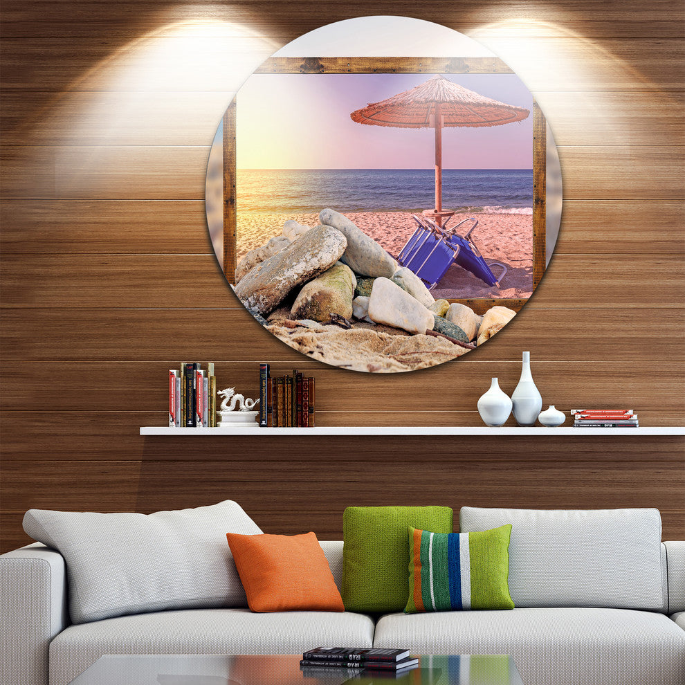 Framed Beach Sunset, Seashore Art Round Wall Art, 23"