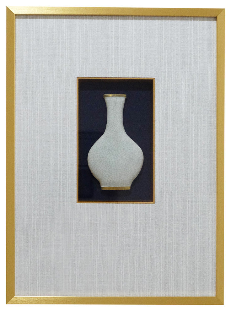 Framed Crackle Tile Vase, White