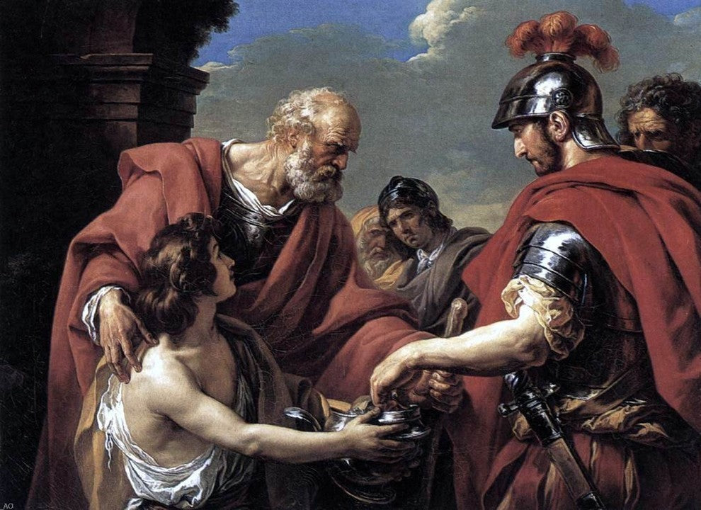 18" x 27" Francois-Andre Vincent Belisarius premium canvas print reproduced to meet museum quality standards. Our museum quality canvas prints are produced using high-precision print technology for a more accurate reproduction printed on high quality canvas with fade-resistant, archival inks. Our progressive business model allows us to offer works of art to you at the best wholesale pricing, significantly less than art gallery prices, affordable to all. We present a comprehensive collection of exceptional canvas art reproductions by Francois-Andre Vincent.