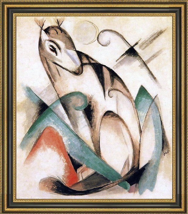 Franz Marc Seated Mythical Animal - 20" x 25" Framed Premium Canvas Print