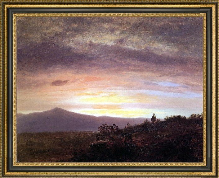 21" x 28" Frederic Edwin Church Mount Katahdin framed premium canvas print reproduced to meet museum quality standards. Our Museum quality canvas prints are produced using high-precision print technology for a more accurate reproduction printed on high quality canvas with fade-resistant, archival inks. Our progressive business model allows us to offer works of art to you at the best wholesale pricing, significantly less than art gallery prices, affordable to all. This artwork is hand stretched onto wooden stretcher bars, then mounted into our 3 3/4" wide gold finish frame with black panel by one of our expert framers. Our framed canvas print comes with hardware, ready to hang on your wall. We present a comprehensive collection of exceptional canvas art reproductions by Frederic Edwin Church.