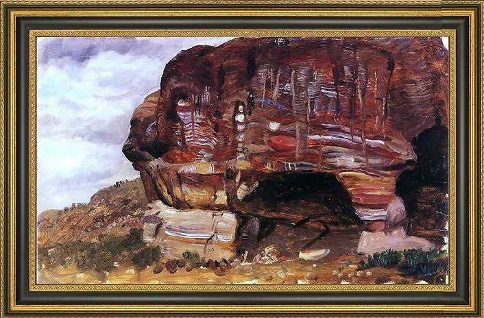 16" x 24" Frederic Edwin Church Study of Zoomorphic Rock Petra framed premium canvas print reproduced to meet museum quality standards. Our Museum quality canvas prints are produced using high-precision print technology for a more accurate reproduction printed on high quality canvas with fade-resistant, archival inks. Our progressive business model allows us to offer works of art to you at the best wholesale pricing, significantly less than art gallery prices, affordable to all. This artwork is hand stretched onto wooden stretcher bars, then mounted into our 3 3/4" wide gold finish frame with black panel by one of our expert framers. Our framed canvas print comes with hardware, ready to hang on your wall. We present a comprehensive collection of exceptional canvas art reproductions by Frederic Edwin Church.
