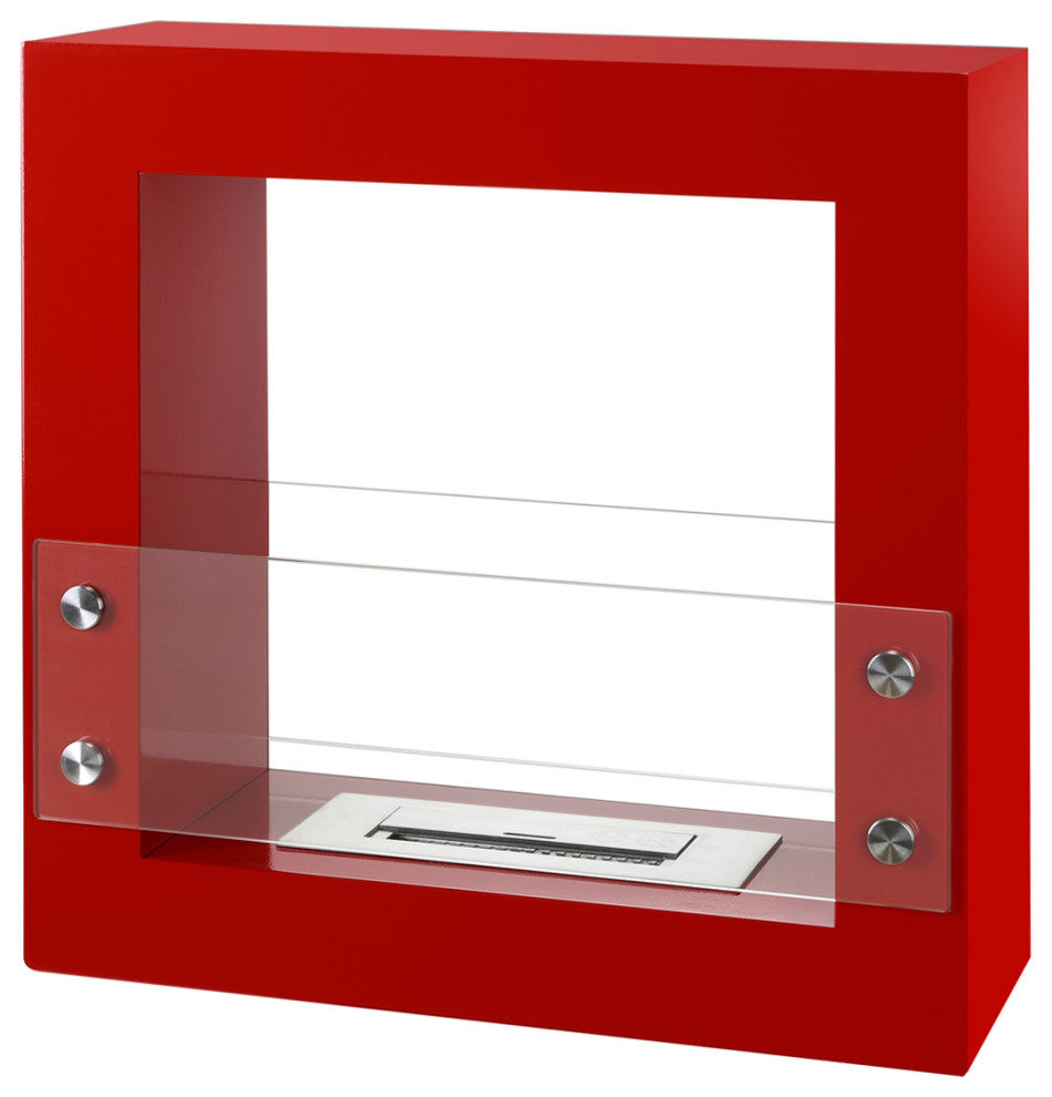 With its contemporary design that reveals genuine flames in all their splendor, the Ignis® Tectum Mini Freestanding Ethanol Fireplace effortlessly graces a plethora of indoor and outdoor spaces. With its open, two-sided construction, all of those in its surround are treated to the unforgettable and clean-burning fire while preserving the space"™s sightline. Square in shape, the Tectum Mini Ventless Fireplace is manufactured of steel and made available finished in your choice of an unadulterated black, clean white, or dare-to-be-different red powder coat. An essential piece for any well-appointed area, its simple squared design frames the linear flame that is especially elegant in the dim of the evening.Portable, Tectum Mini has been designed with multiple souls: elegant, social, and rugged. Tectum Mini employs one rectangular spill-proof ethanol burning fireplace insert composed of heavy-duty, Grade 304 brushed stainless steel. The insert features an integrated sliding baffle which allows for control of flame size, heat output, and ongoing operational costs. Finishing the makeup of this ventless fireplace, Tectum Mini is delivered with two partial panes of tempered glass, intelligently positioned in the front and rear of the flames. The heat-resistant glass serves as a safety measure and increases the performance of the fireplace by blocking breeze or wind that would otherwise burn the liquid fuel quicker.Fireplace Type: Freestanding Ethanol FireplacesModel: Tectum Mini RedProduct Color: RedProduct Dimensions: W 23.5 in x H 23.5 in x D 9 inProduct Weight: 33 PoundsFuel Capacity: 1.5 Liters (1.6 Quarts)Minimum Fuel Required: 1 Liters (1.05 Quarts) For Satisfactory ResultsApproximate Burn Time: 5 "“ 9 HoursApproximate Heat Output: 6,000 BTUMinimum Required Space: 1,200 Cubic FeetFlame Length: 7 1/8"Adjustable Flame?: YesConstruction / Material: 3mm Grade 304 Stainless Steel, Powder Coated Steel, Tempered GlassWarranty: 3-Year Parts & Labor