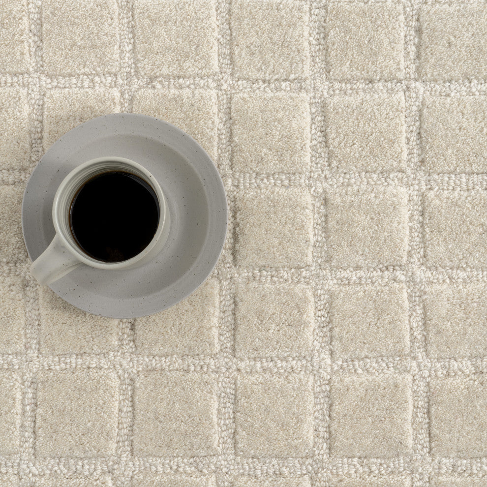 Fritz Checkered Wool Area Rug, Beige 3' x 5'