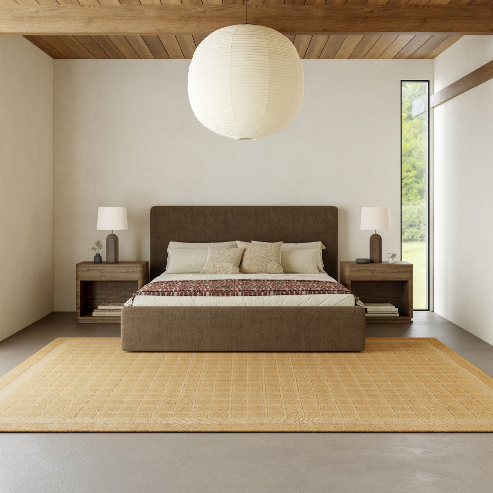 Fritz Checkered Wool Area Rug, Golden Yellow 4' x 6'