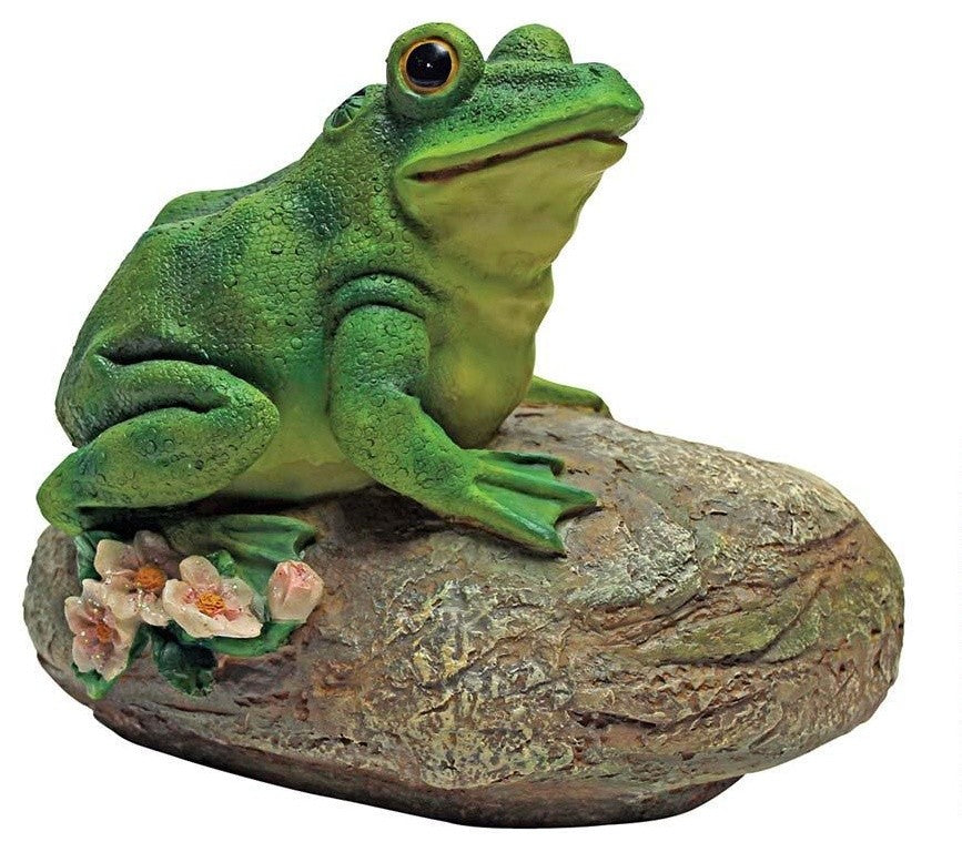From The Acorn Hollow Garden Statuary Collection; Even if you cant hear him croak, this Thurston the frog sculpture is large enough to spot from a distance! Add playful ambiance to your garden or pond with this delightful, garden frog statue. Cast in quality designer resin to capture details including his brightly bulging eyes, then hand-painted in garden-bright hues, our toad statue is an easy garden and pond focal point. Another quality amphibian animal statue from. 6"W x 8.5"D x 7"H. 2 lbs.
