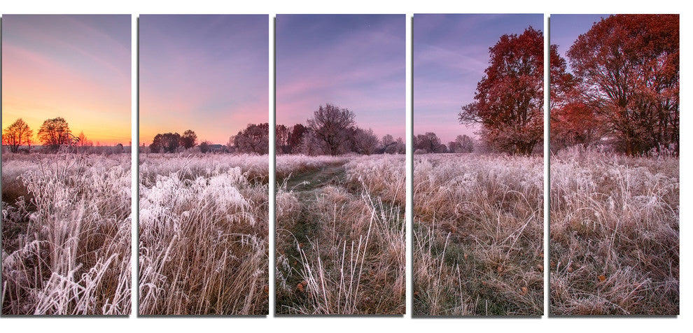"Frosty Fall Trees With Red Leaves" Landscape Wall Art, 5 Panels, 60"x28"