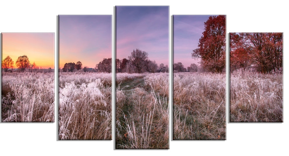 "Frosty Fall Trees With Red Leaves" Landscape Wall Art, 5 Panels, 60"x32"