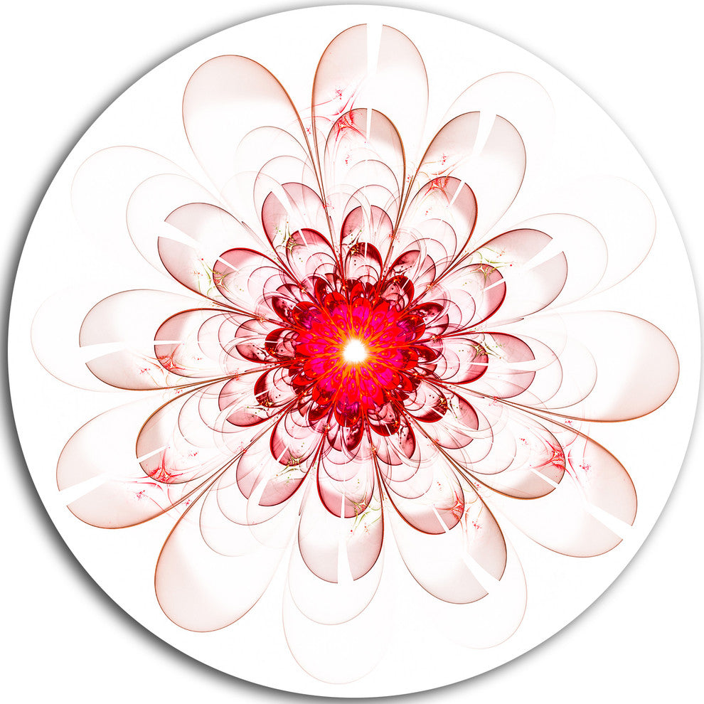 Bring Contemporary Abstraction to your home with this large Circle Metal wall art. This Full Bloom Fractal Flower in Red Metal Artwork makes it the focal point of any room or office.