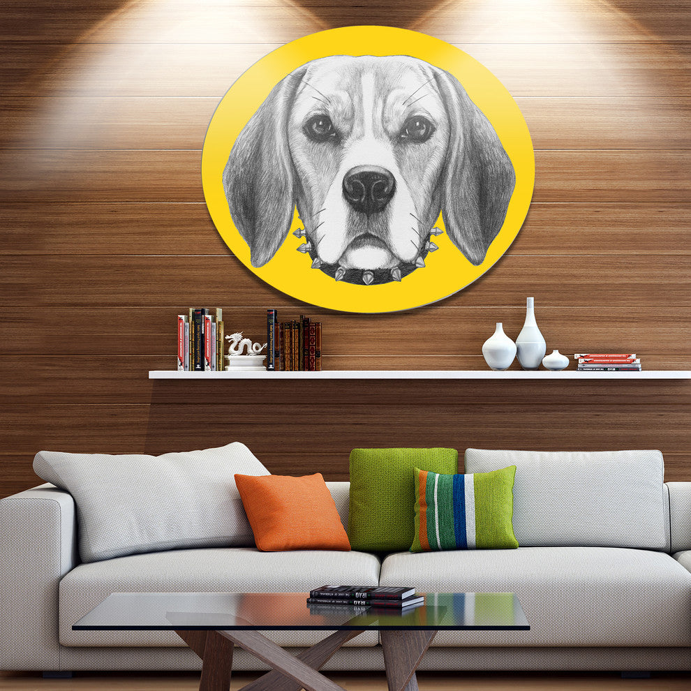 Funny Beagle Dog With Collar, Animal Large Disc Metal Wall Art, 36"