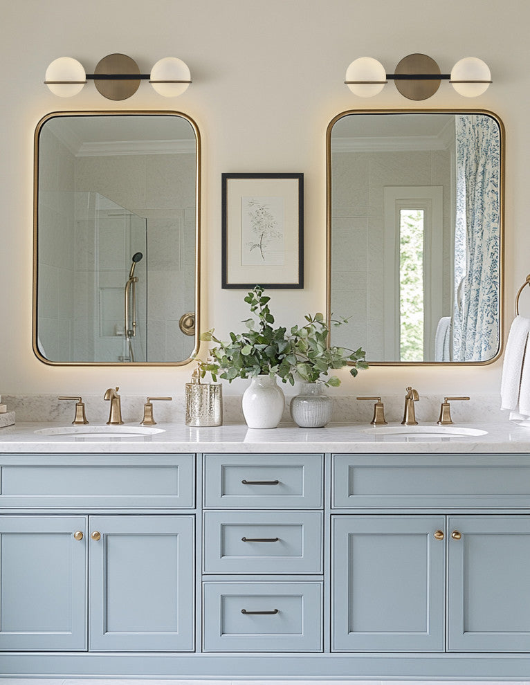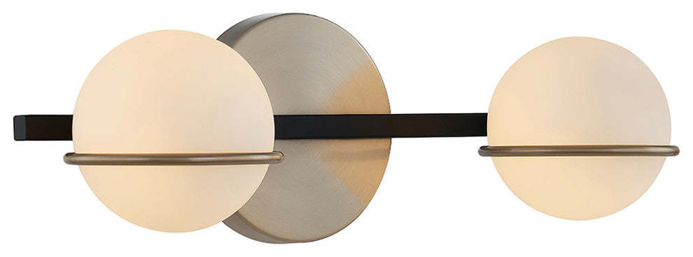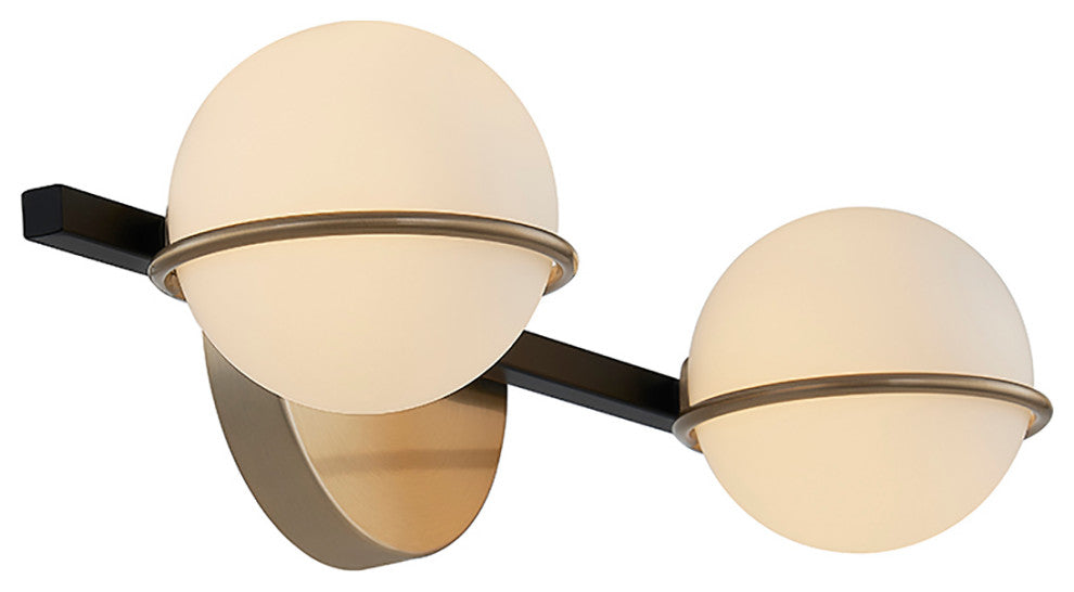 Fusion-Centric 2-Light Bath Bar Matte Black/Brass Finish Opal Glass