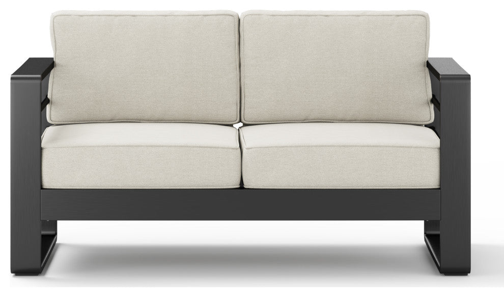 Gadd Outdoor Aluminum Loveseat With Cushions, Black/Beige