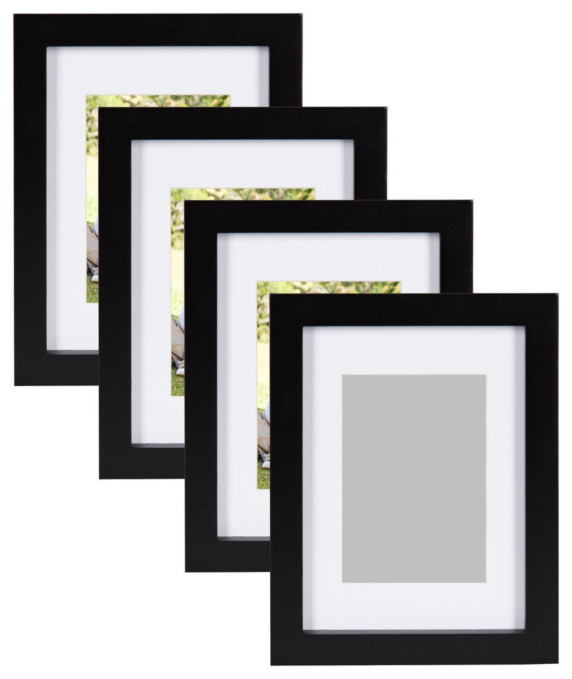 Turn your home dcor into a gorgeous wall gallery display! This classic frame has a beautiful rich satin finish with a sturdy wood construction. Each frame will highlight your art prints or own treasured photos beautifully. Combine with other frames in the collection to create beautiful and contemporary art galleries on your own wall. Set of 4 frames. Each frame holds an 8x10 photo with included white mat or 11x14 photo without the mat. Constructed of wood with satin black finish.Includes hangers on back for wall display; Can be displayed horizontally or vertically; Glass included.Frame profile is 0.75 inches wide and 0.75 inches deepOuter frame dimensions are 12 inches by 15 inches by 0.75 inch depth.