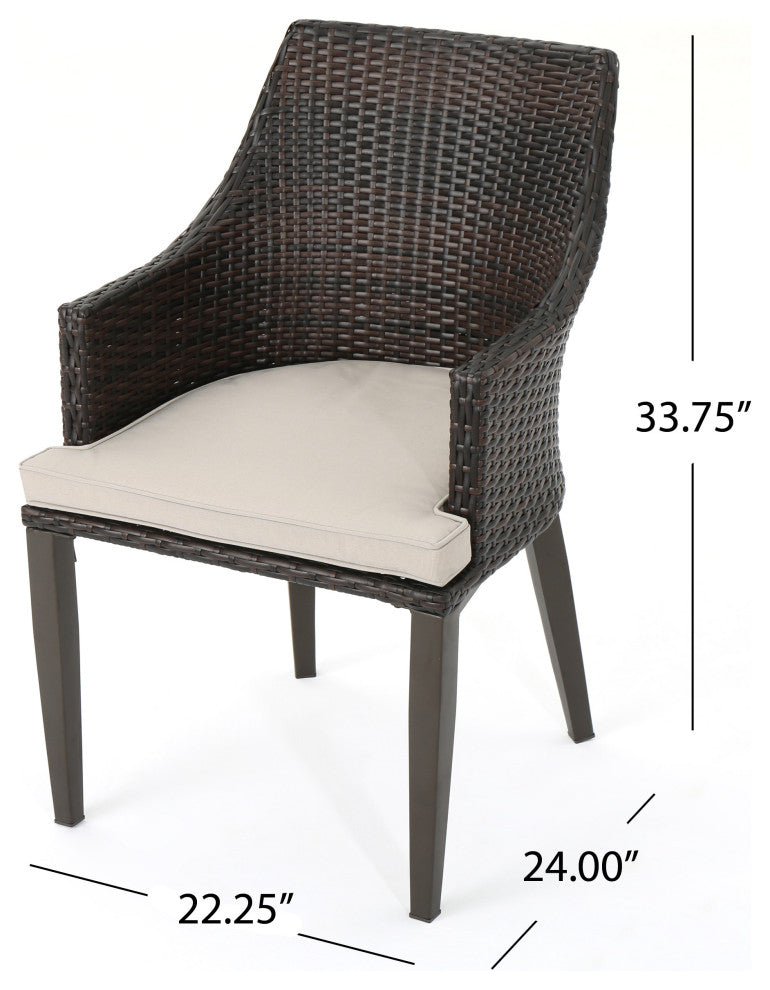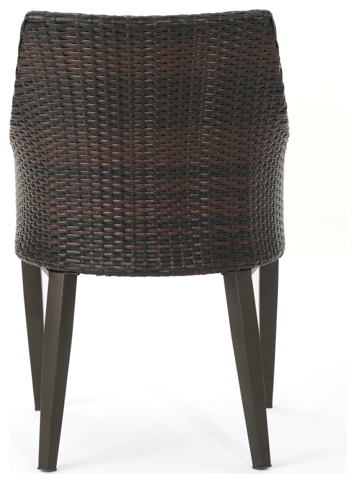 This clean and simple bistro set combines the functionality of iron with the comfort of wicker. Complete with a table, and 2 wicker dining chairs, this set offers comfortable seating in the great outdoors. Sure to complement any patio decor, this dining set offers you a stylish wicker design with the functionality of an iron framework and comfortable cushioned chairs, guaranteed to give you a weather resistant set that will last your for years to come.