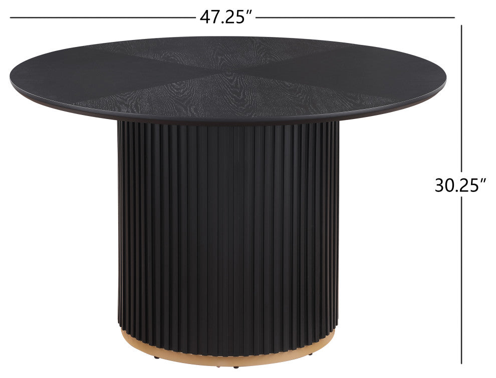 GDF Studio 47.25" Round Pedestal Dining Table With 4 Armchairs, Natural/Black