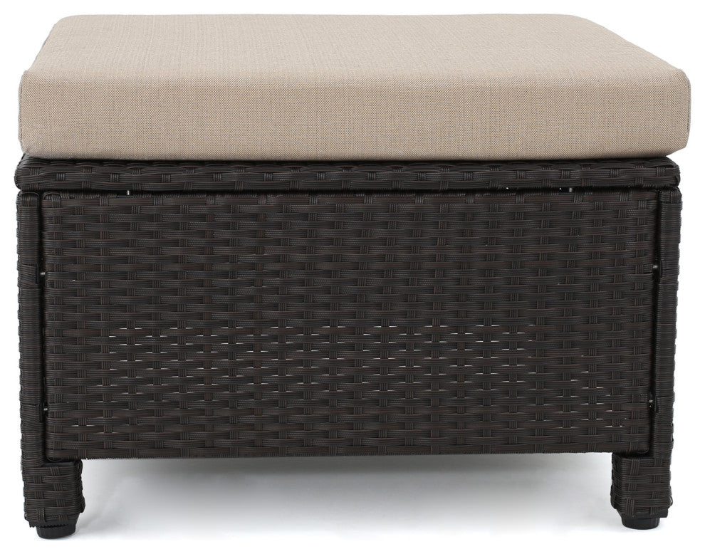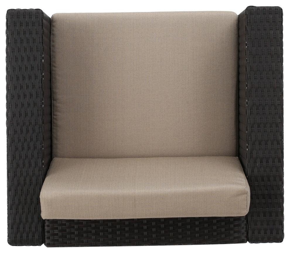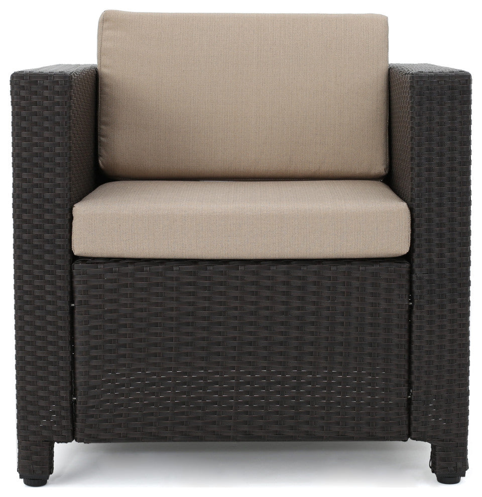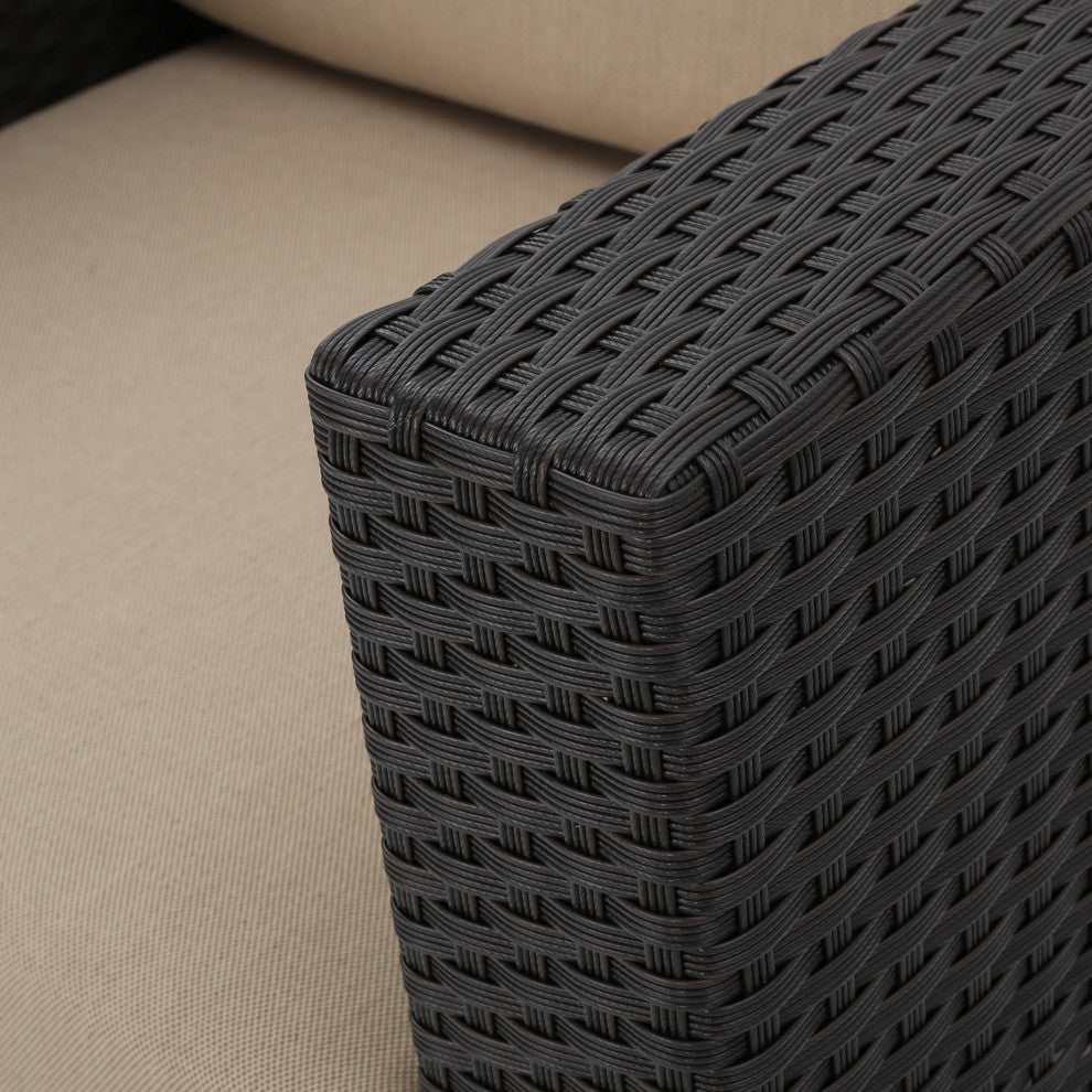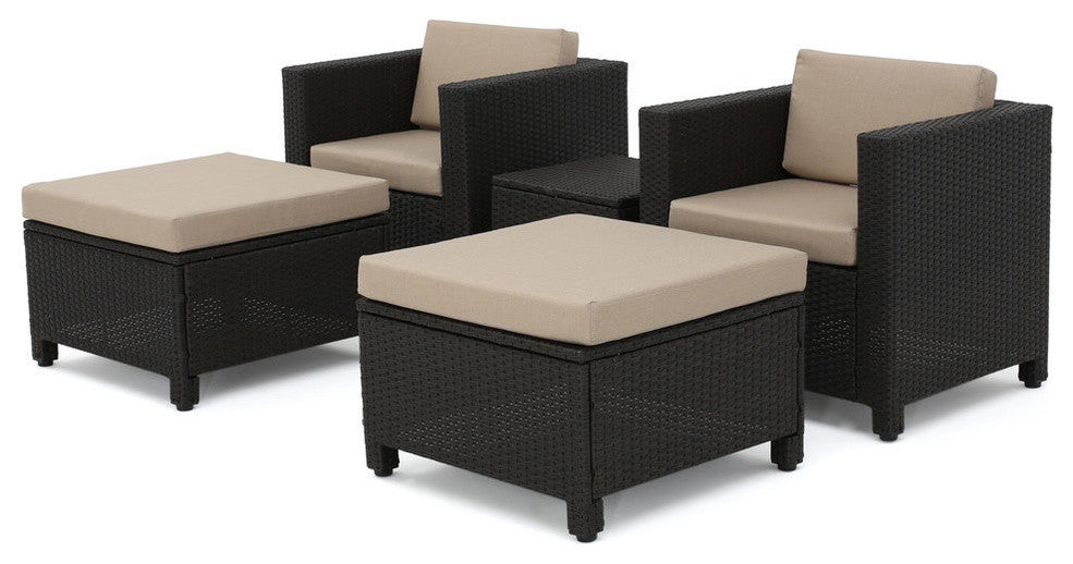 GDF Studio 5-Piece Venice Outdoor Wicker Chat Set With Water Resistant Cushions, Beige