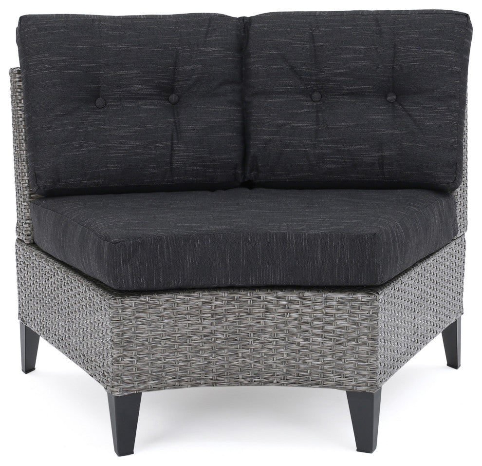 GDF Studio 6-Piece Nessett Outdoor Black Wicker Half Round Sofa, Dark Gray