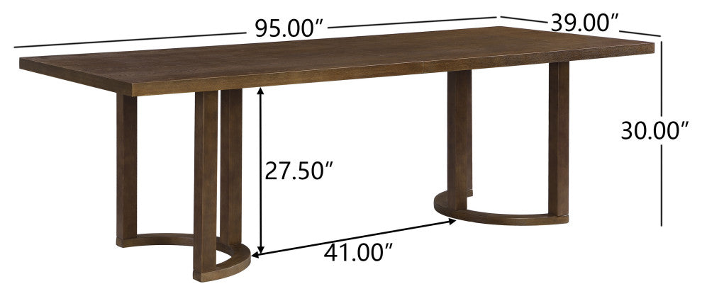 • Modern Minimalist Design: This dining table features clean lines and a contemporary design, making it perfect for modern home decor. The elegant surface paired with unique leg construction adds a sophisticated touch to any dining room.• • Premium Quality Materials: Crafted from high-quality wood, this table is sturdy and built to withstand daily wear and tear, ensuring long-lasting use while maintaining its stylish appearance.• • Versatile Use: Ideal for dining rooms, this table can also serve as an office desk or conference table, offering ample space for various activities.• • Stable Construction: The U-shaped legs ensure the table''s stability, preventing wobbling even after multiple relocations or extended use.• • Easy Assembly: Comes with detailed assembly instructions for easy setup. No professional tools are required to assemble this table.• • Includes: One (1) Dining Table• Material: Rubberwood• Color: Multiple Options• Assembly Required• Dimensions: 39.00" D x 95.00" W x 30.00" H
