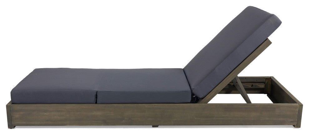 GDF Studio Acacia Wood Chaise Lounge & Foldable Cushion Set, Sandblast Gray/Dark Gray, Set of 2