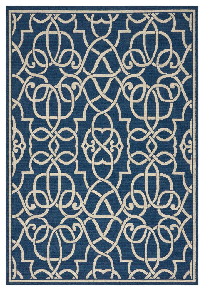 This fashionable rug is the perfect way to reinvigorate a previously dull and drab room; navy and ivory stitch work are woven together intricately in this graphic selection. Its cut and loop construction make this selection durable, able to withstand the test of time. Sure to become a memorable piece of your home''s legacy.