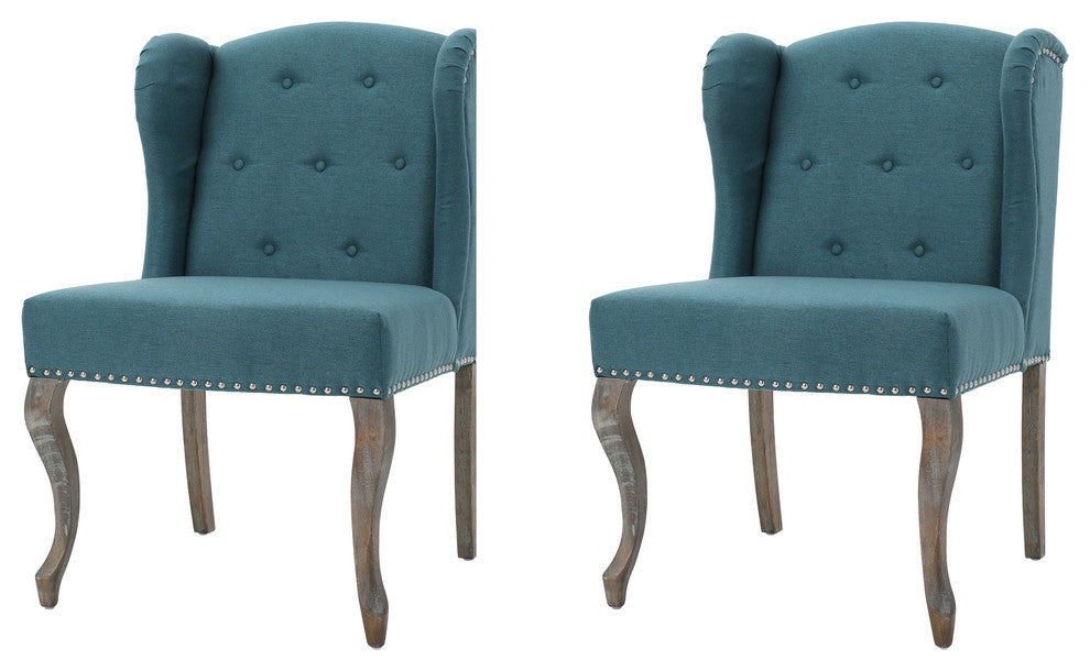 GDF Studio Asheville Modern Fabric Wingback Chair, Set of 2, Dark Teal