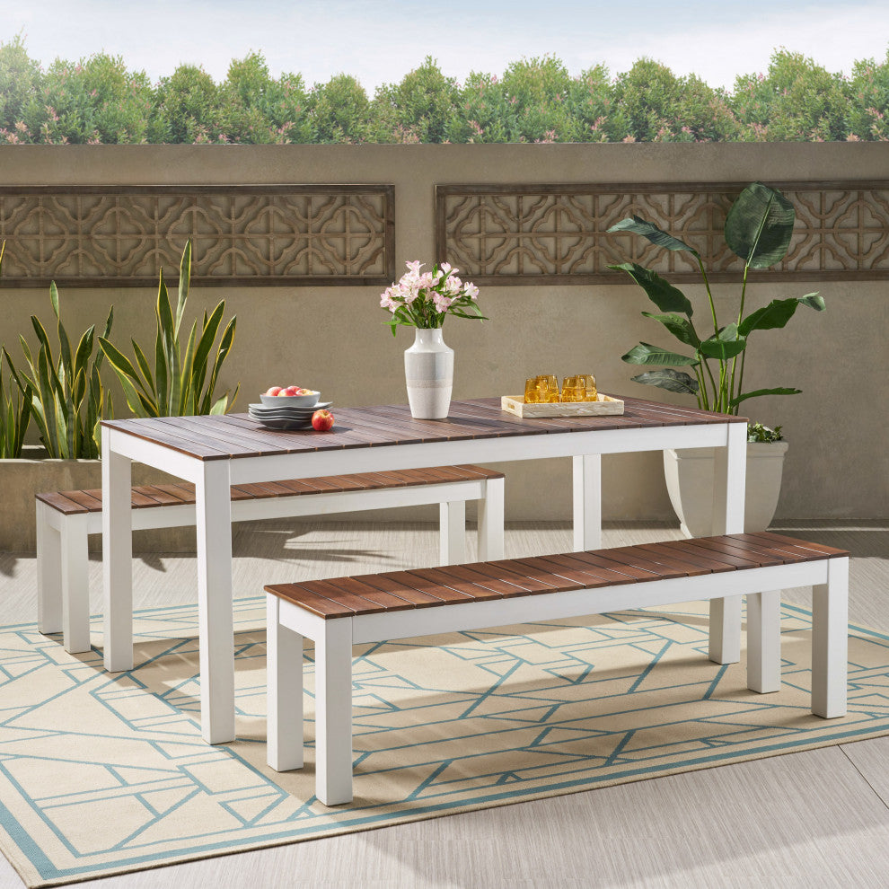 GDF Studio Bali Outdoor 3 Piece Acacia Wood Picnic Dining Set with Benches