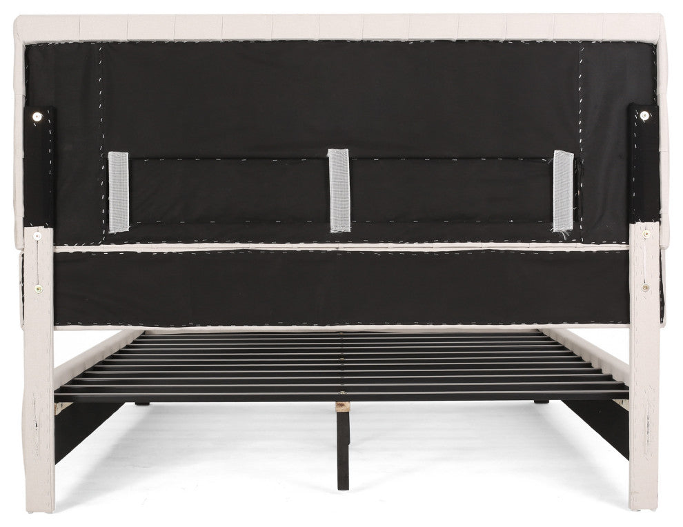 GDF Studio Cumulus Fully Upholstered Fabric Queen Bed Set, Ivory