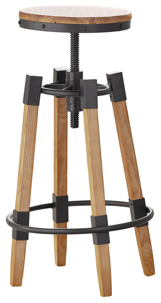 GDF Studio Javadel Modern Industrial Firwood Adjustable Swivel Barstool