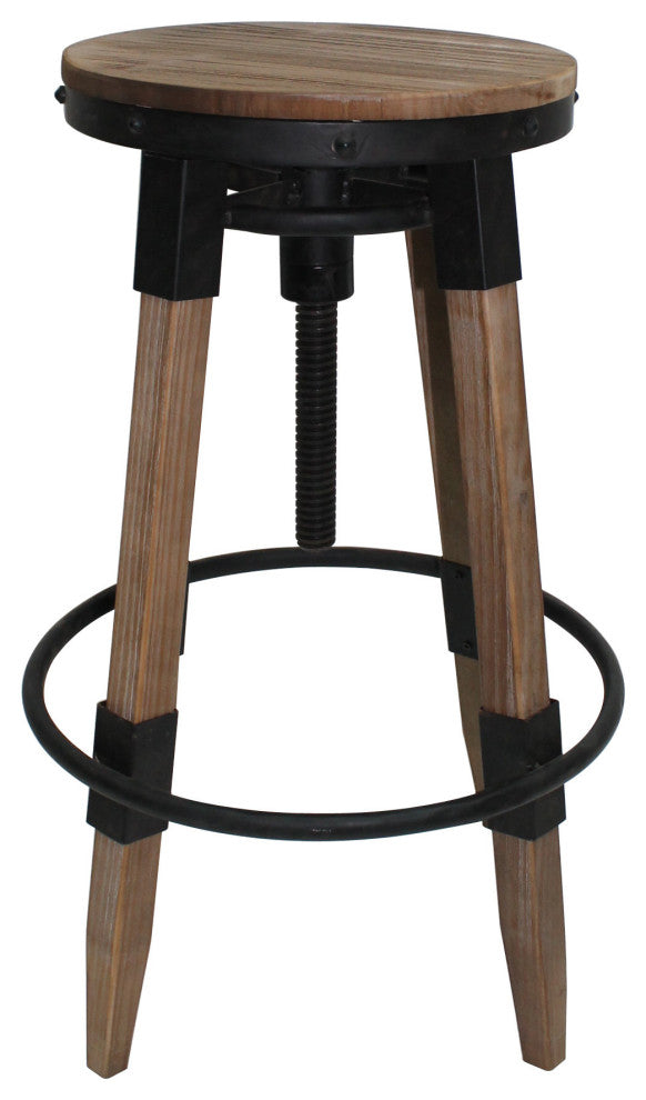 Modernize your home with an edgy look that still offers the classic touch of natural wood. Our barstool offers an exceptional industrial modern appeal for any space with its rich firwood frame and iron accents. Ideal for those who have a variety of guests, this seat offers adjustable and swivel functions for easy maneuverability and personalization, making this a perfect fit for all. With its refined design and flawless capabilities, this impressive barstool allows you to create an atmosphere of raw charm. MODERN INDUSTRIAL: Our barstool incorporate powder-coated metal accents with rich wood to create an understated modern industrial design. Featuring clean lines contrasted by graceful curves, this stool offers a chic aesthetic to any home.FIRWOOD: The frame of this barstool is created with refined firwood for a resilient structure that features straight, tight grains. This durable wood less prone to warping or twisting due to its dense nature.IRON ACCENTS: The sturdy construction of this iron accents ensures that this barstool will hold up under heavy use. This not only gives this barstool its industrial look but also provides a sturdy place to put your feet.SWIVEL FUNCTION: This barstool brings ultimate comfort to your kitchen or home bar with its swivel function. This makes it easy for you to get in and out of your seat without the hassle of having to move your barstool. ADJUSTABLE DIMENSIONS: Choose an accessory that is the perfect size for you and your furniture. This barstool is 16.75" W x 16.75" D x 25.75-32.75" H. You will love how much your space can transform with the simple addition of this charming barstool.Includes: One (1) BarstoolMaterial: FirwoodFrame Material: IronFinish: Antique BrownFrame Finish: Antique BlackHand-Crafted DetailsNo Assembly RequiredDimensions: 16.75 inches deep x 16.75 inches wide x 25.75-32.75 inches high