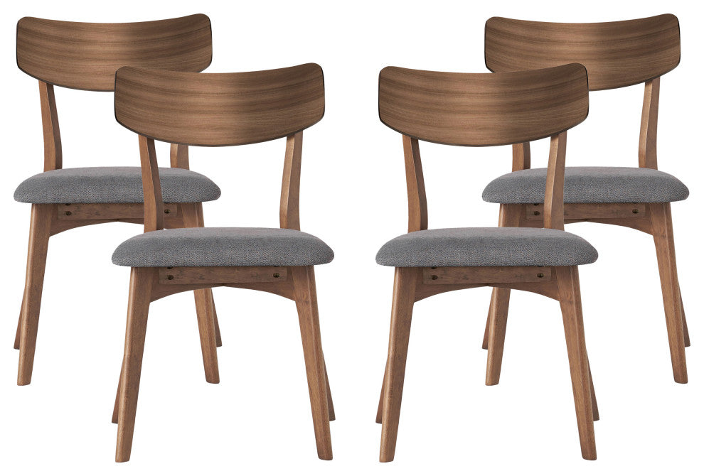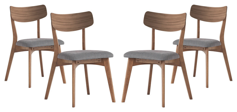 GDF Studio Mid-Century Modern Dining Chairs, Set of 4, Dark Gray/Walnut