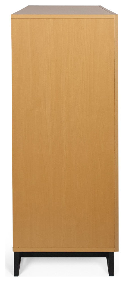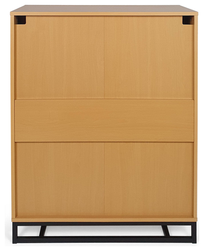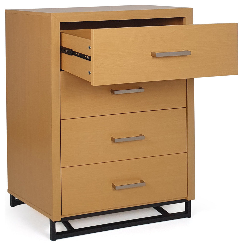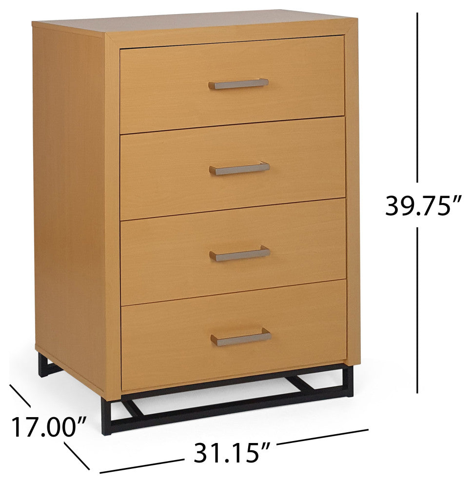 GDF Studio Modern 4-Drawer Wood Dresser With Iron Base, Maple/Black