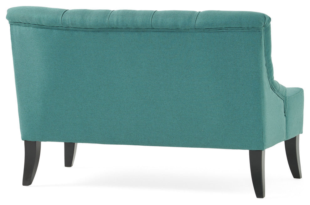 GDF Studio Nicoletta Tufted Fabric Settee Loveseat, Dark Teal