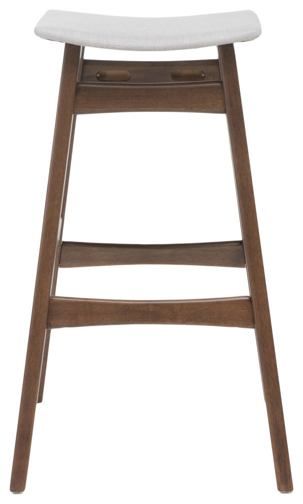 Bring home a delightful retro charm that is sure to be a hit. With refined wood and delightfully upholstered seating, our barstool set creates an exquisite mid-century modern appeal that also brings incredible function to your kitchen nook or home bar. Each barstool is complemented by its iconic splayed frame, creating a durable structure that ensures stability for you and your guests. Finished with a convenient foot rail, this barstool set offers a sophisticated design that enhances the style of any home.MID-CENTURY MODERN DESIGN: Blending together smooth upholstery with a stunning splayed wood frame, our barstool offers a mid-century look to your interior space. With its clean lines and understated look, this stool uses new materials to reimagine a traditional design.UPHOLSTERED: Our barstools are generously upholstered, giving any room a refined appearance. This provides a smooth, immaculate texture for this piece, as well as comfortable seating.RUBBERWOOD FRAME: Our environmentally-friendly wood not only offers plenty of durability, but it also gives this piece a beautiful natural-grain look. Combined with a gorgeous finish, this wood will truly stand out in any room.BAR STOOL DIMENSIONS: Choose an accessory that is the perfect size for you and your furniture. Each barstool is 20.00" W x 18.50" D x 29.50" H. You will love how much your space can transform with the simple addition of this charming barstool set.ASSEMBLY REQUIRED: Some assembly is required for this barstool set. All of the instructions and tools needed for assembly are included. This comes as a set of two.Includes: Two (2) BatstoolsMaterial: FabricLeg Material: RubberwoodMultiple Color OptionsAssembly RequiredDimensions: 18.50 inches deep x 20.00 inches wide x 29.50 inches highWeight Capacity: 300 lbs