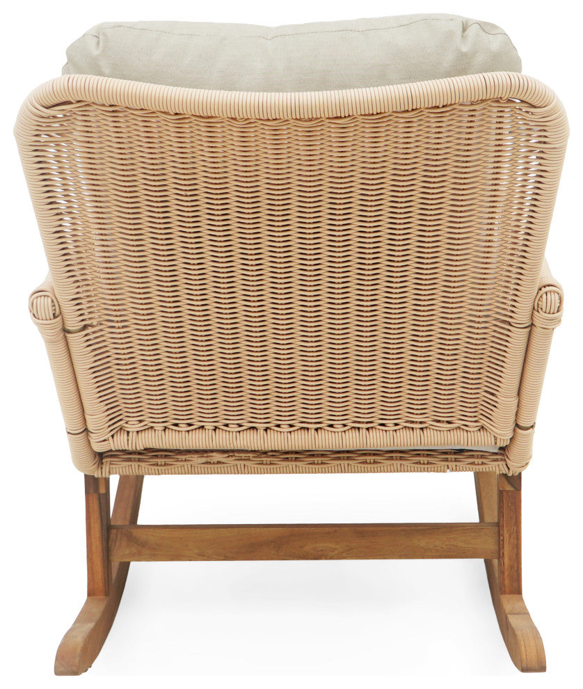 GDF Studio Outdoor PE Rattan Rocking Chair With Cushions, Beige/Natural, Single