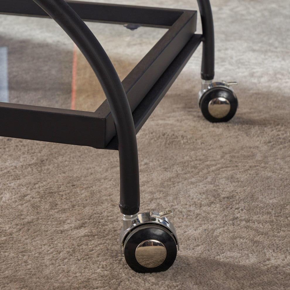 GDF Studio Presley Indoor Black Iron Bar Cart With Tempered Glass Shelves