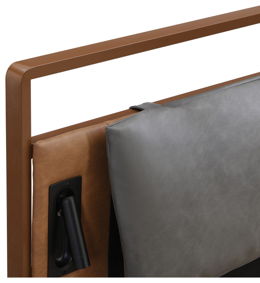 • [Modern & Functional Design] The sleek brown and gray leather upholstery with LED lighting enhances the contemporary aesthetic, making it a stylish addition to any bedroom.