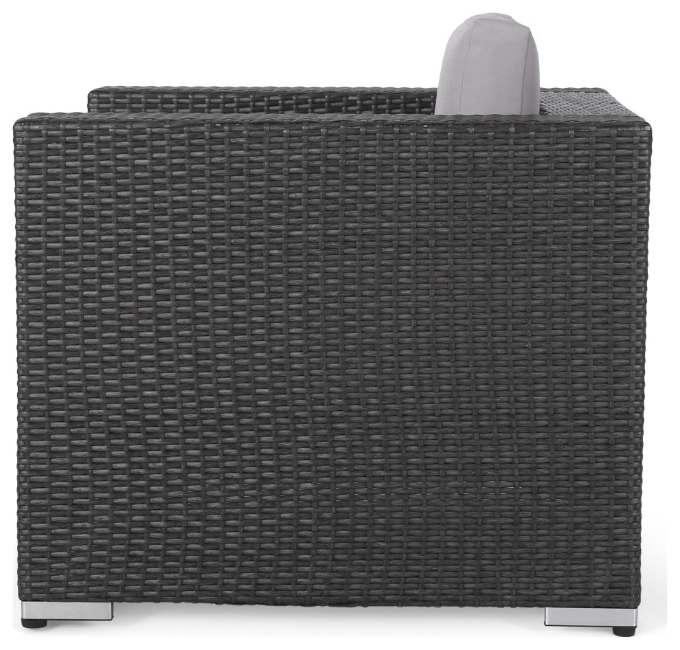 GDF Studio Verin Outdoor Gray Wicker Club Chairs, Silver Cushions, Set of 2