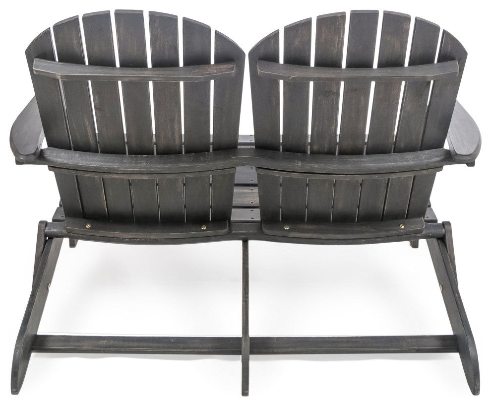 GDF Studio Vivian Outdoor Acacia Wood Adirondack Loveseat, Dark Gray