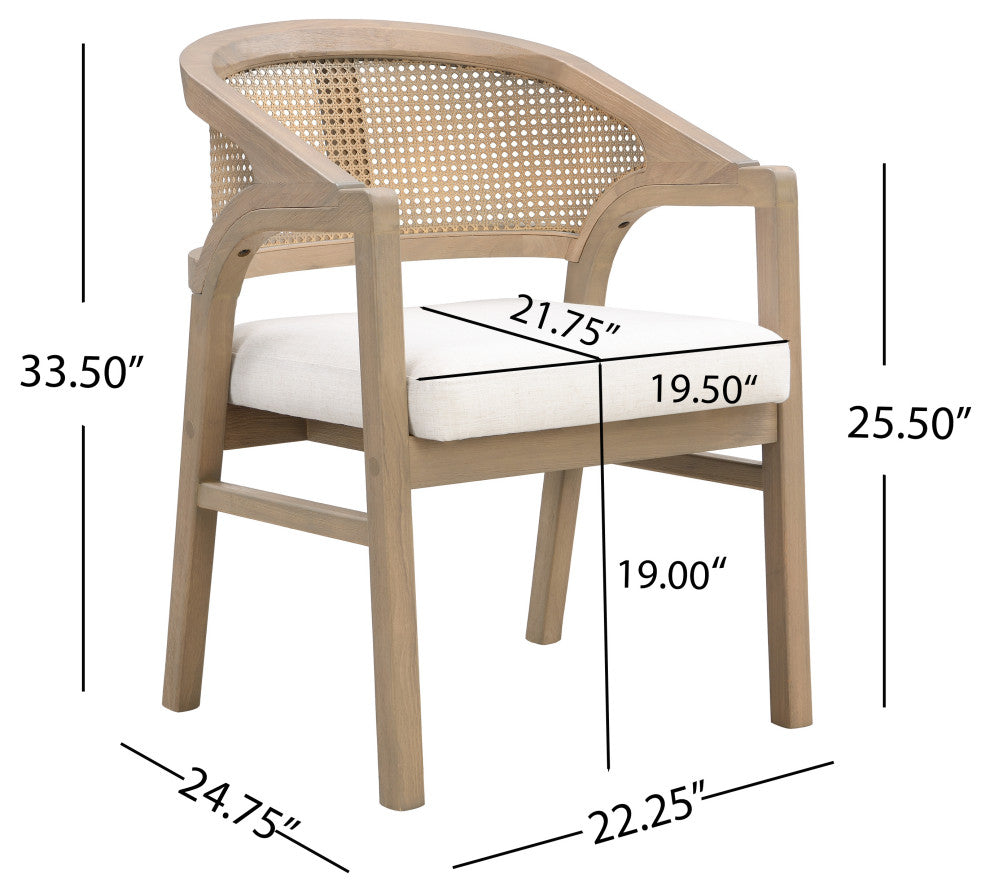 GDF Studio Wooden Frame Dining Chair With Cane Back, Light Ash + Beige, Set of 2