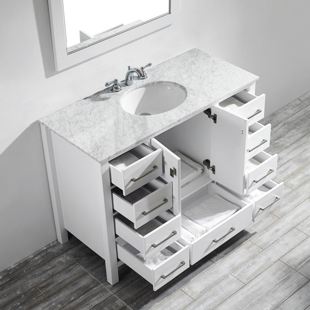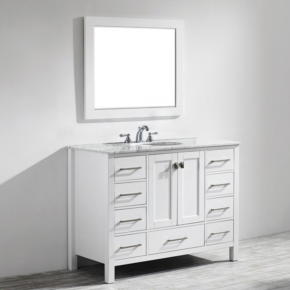 Gela Single Vanity, White, 48", With Mirror