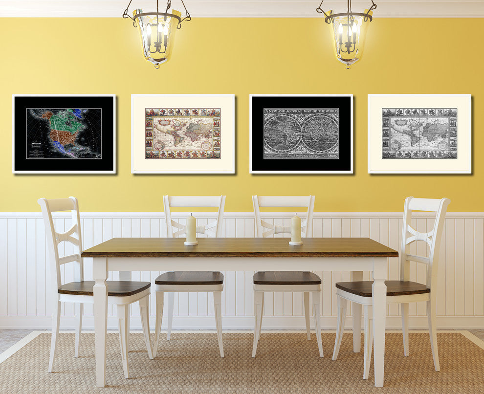 Geographic Vintage Old Map Print On Canvas With Picture Frame 28" X 37"