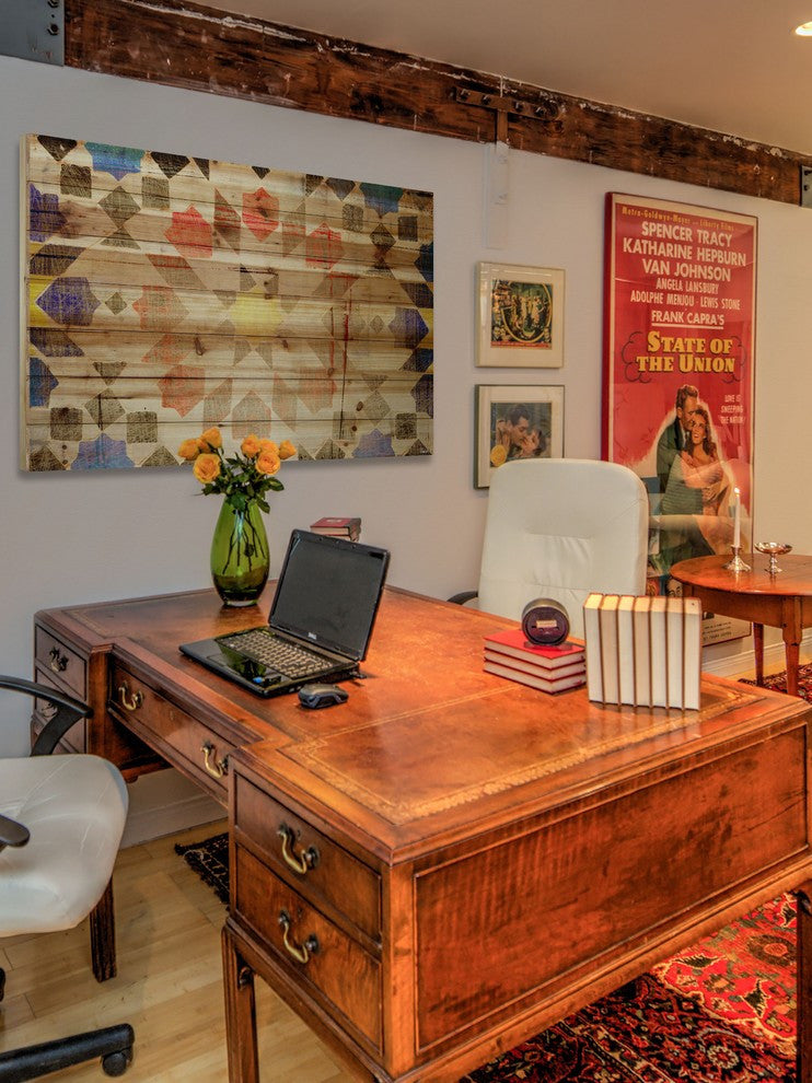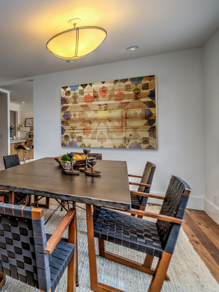 "Geometric Bloom" Print on Natural Pine Wood, 36"x24"