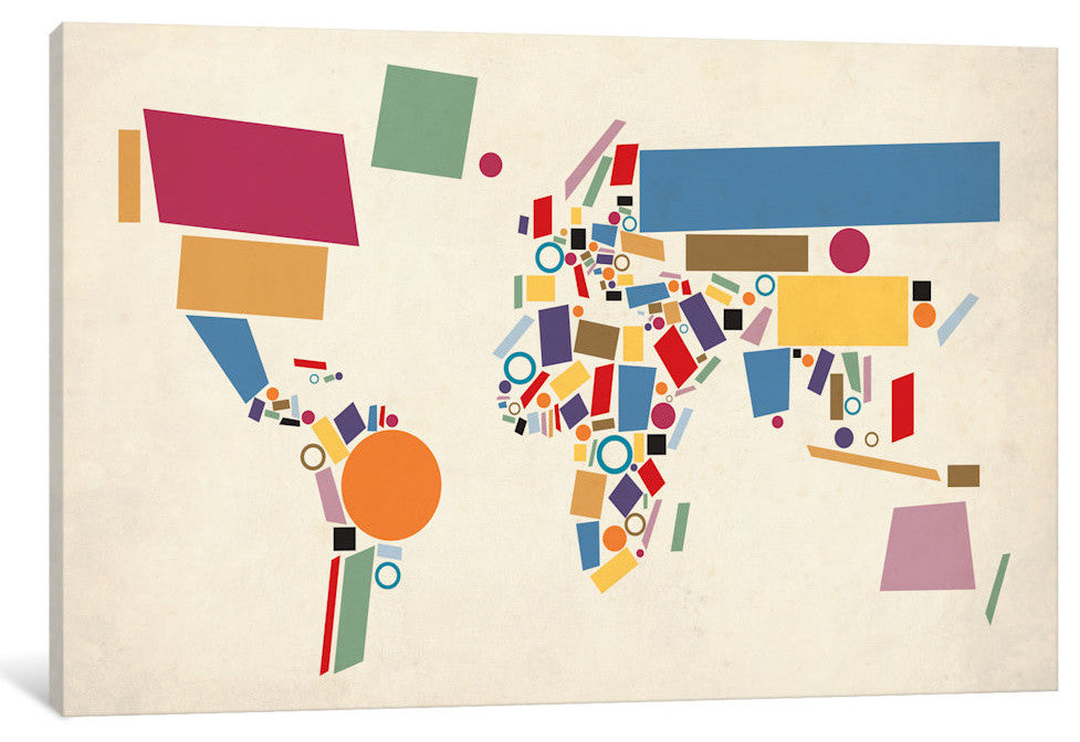 "Geometric World Map, Abstract" Wrapped Canvas Print, 26x18x1.5
